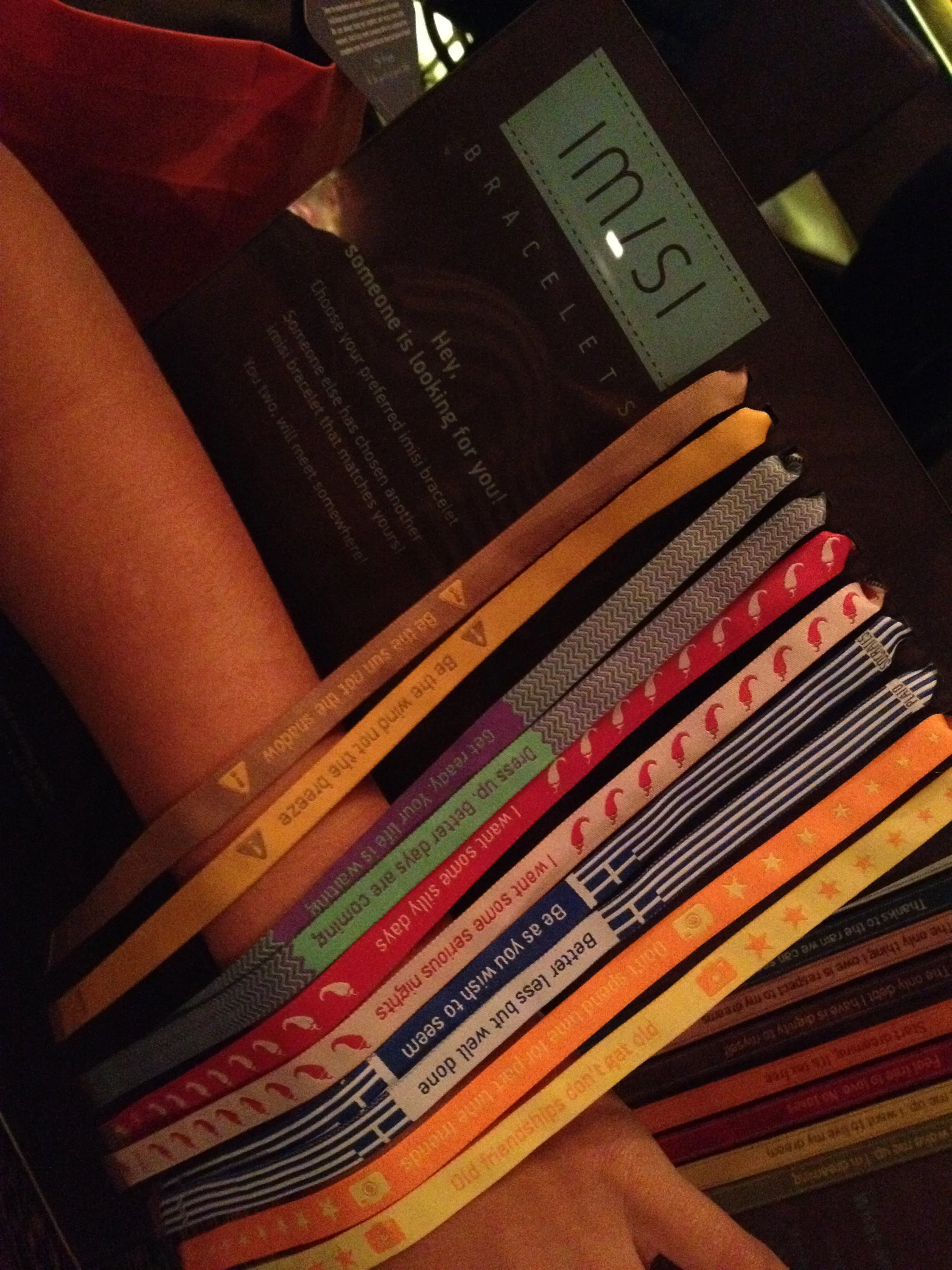 Tρεις κόμποι. Σατέν, πλεκτό, με στρας και μέταλο. Μέχρι να πάω στην παρουσίαση των Imisi Bracelets, δεν ήξερα ότι τα υφασμάτινα βραχιόλια με τα μηνύματα είναι ελληνικά. «Imisi is the ancient Greek word for half», για όποιον δεν κατάλαβε. «Μeasure your hand to find out if your new imisi bracelet fits». Παιχνίδια της μόδας, παιχνίδι με ύφασμα, παιχνίδια με λέξεις, ντιζάιν, μυρωδιές, αρώματα, βλέμματα, επιλογές, μυστικά.